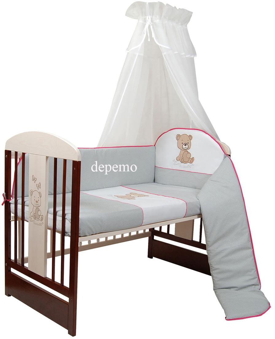 - Na peřince a mantinelu je vyšitý motiv medvídka, polštářek je bez výšivky