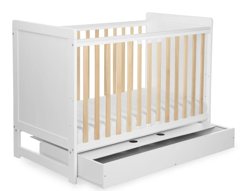 - Dětská postýlka je vyrobena z borovice, tyčky v bočnicích jsou z BUKU